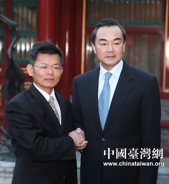 3月22日下午,中共中央台办主任王毅在北京钓鱼台宾馆会见来访的台湾前高雄县长杨秋兴一行。 (中国台湾网 田云鹏 摄)