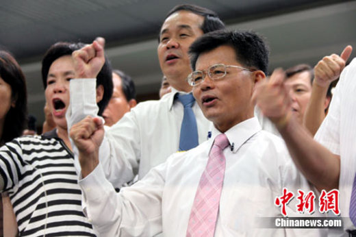 资料图:去年8月9日,时任高雄县县长的杨秋兴宣布,他自行退出民进党,以无党籍身份参加高雄县市合并后的大高雄市长选举。中新社发 刘舒凌 摄