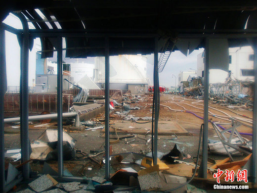 日本原子能安全保安院2011年3月23日发布的照片显示了福岛第一核电站内部建筑物受损情况。