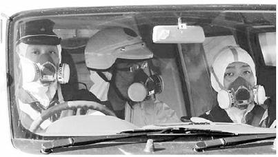 在福岛核电站以南10公里的相马市巡逻的警察。(摄于3月12日下午)