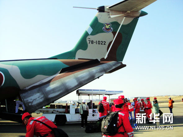 中国国际救援队下飞机后迅速赶往灾区 彭碧波摄