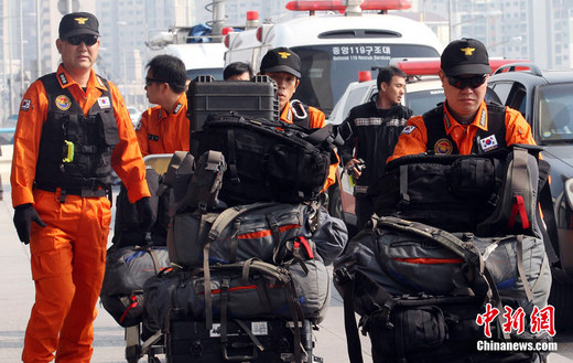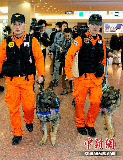 北京时间3月11日13点46分,日本本州岛附近海域发生里氏9.0级强烈地震,震中位于宫城县以东太平洋海域,震源深度10公里,东京有强烈震感。图为韩国国际救援队从首尔机场启程飞往日本。