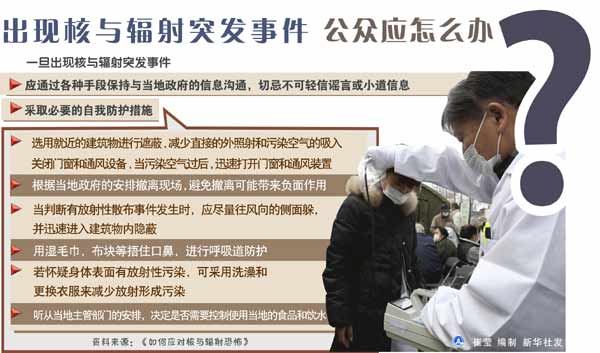 昨天,卫生部中国疾控中心发布核与辐射事故防护知识要点,市民应避免恐慌,按照政府的指示行动,在可能有放射性污染存在的情况下待在室内。