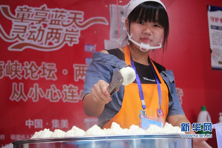 两岸特色庙会上,来自台湾和闽南地区的小吃品种繁多。皮薄馅大的包子刚刚新鲜出炉。新华网 刘默涵 摄