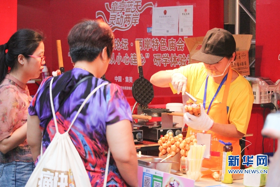 新华网厦门6月15日电(刘默涵)14日,两岸特色庙会在厦门集美举行,来自台湾和闽南地区的40户美食商家带来种类繁多、食材新鲜、风味独特的特色小吃。