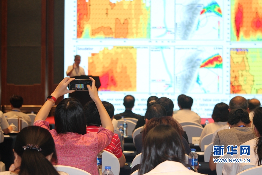 两岸气象业界共同研讨如何提高气象监测预报预警能力,图为观众用手机记录演讲“干货”。新华网 刘默涵 摄