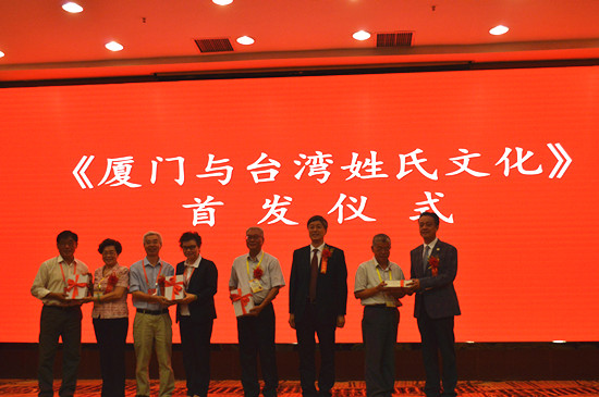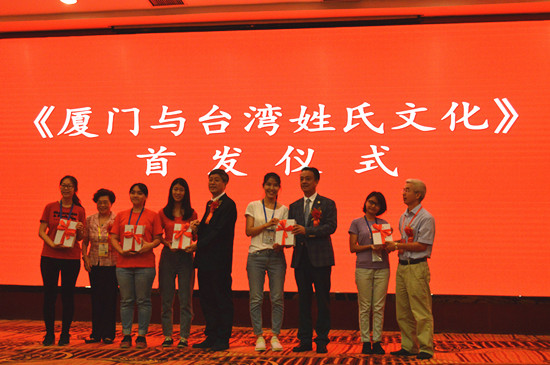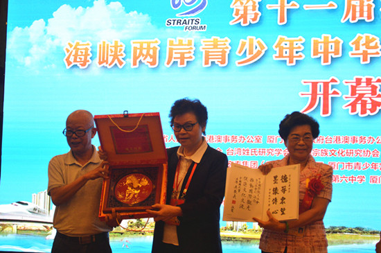 6月14日晚,第十一届海峡论坛·海峡两岸青少年中华姓氏源流知识竞赛开幕式在厦门华侨大厦(大酒店)举行。来自海峡两岸的参赛选手、观摩师生以及两岸民间社团嘉宾参加了开幕式暨欢迎晚宴,相关单位领导莅临现场。厦门市姓氏源流研究会会长陈淑娥、台湾姓氏研究学会荣誉理事长林培圣、金门宗族文化研究协会理事长叶钧培、台湾中华国际观光协会理事长詹秀蓉分别致辞,厦门市政协副主席陈昌生对大赛的成功举办给予美好祝愿。开幕式上,《厦门与台湾姓氏文化》一书首发仪式举行,海峡两岸民间社团互赠纪念品。