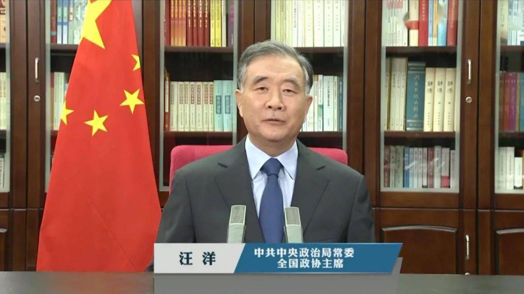 论坛大会上,中共中央政治局常委、全国政协主席汪洋通过视频发表致辞。