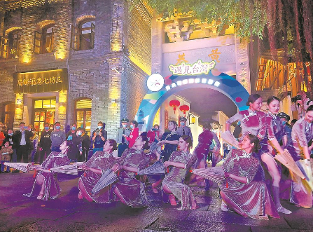 游客在台湾元素的光影墙留影。本报记者 全幸雅 摄