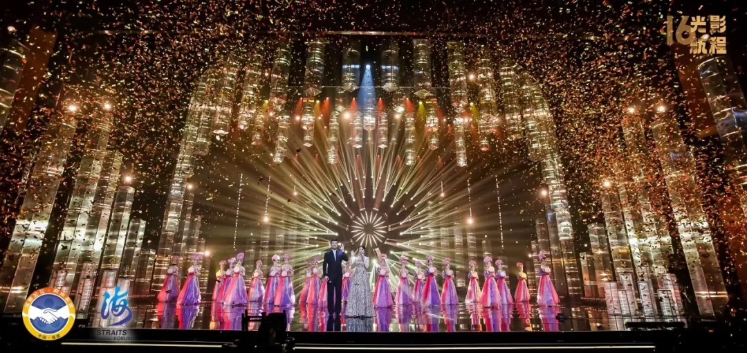 晚会紧扣“共创光影新篇章”这一创作主线,舞台以灯光线条打造出鹭岛之滨的海浪流动感,带来沉浸式的观演感受。晚会节目以两岸民族乐器合奏、两岸歌手同唱一首歌、演绎最受台湾观众欢迎的大陆电视剧主题曲等形式,结合南音、民族舞蹈等艺术表现,为两岸观众呈现一场影视盛会。