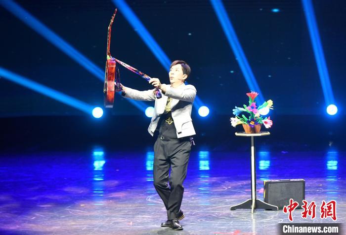 6月15日,海峡两岸艺术交流活动在厦门启动,“艺”心同行文艺演出同时举行。本次活动包括海峡两岸艺术交流节开幕文艺惠民演出、闽台大学生魔术交流大会、海峡两岸青少年街舞展演等内容。图为台湾魔术师粘立人在台上表演节目。中新社记者 吕明 摄