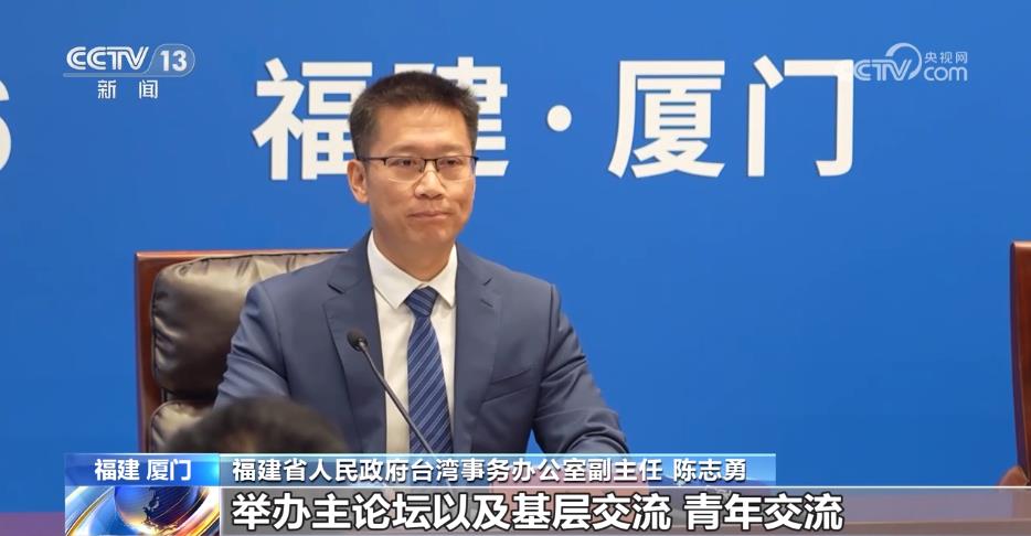 福建省人民政府台湾事务办公室副主任 陈志勇:本届论坛继续以“扩大民间交流、深化融合发展”为主题,举办主论坛以及基层交流、青年交流、文化交流、经济交流四大板块,共50项活动。台湾政党代表、台湾主办单位代表,行业代表、社团负责人以及工青妇、科教文卫、农林水利、民间信仰等各界别嘉宾约7000余人跨海而来、为情而聚。