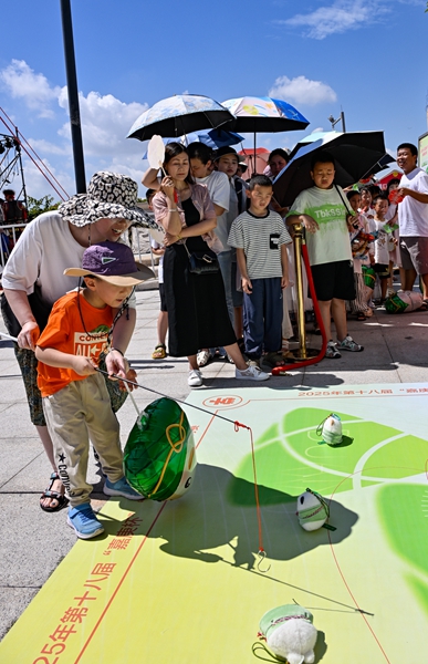 2025年第十八届 “嘉庚杯”“敬贤杯” 海峡两岸龙舟赛配套举行了丰富多彩的活动。图为市民参与钓粽子比赛。