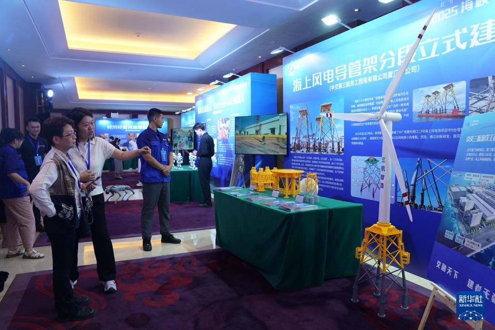 这是6月15日拍摄的2025海峡职工论坛智能高科技产品展示区海上风电导管架分段立式建造展位。新华社发(王鑫摄)