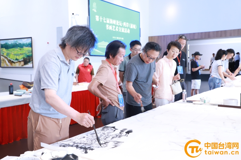 “海峡两岸书画情,挥毫泼墨共此时”书画名家现场笔绘。(中国台湾网发)