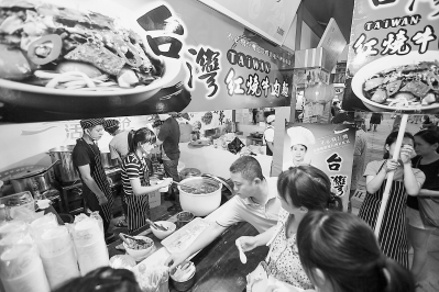 12日,在两岸特色庙会上,市民在品尝台湾美食。本报记者 施辰静 摄