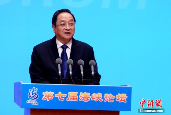 6月14日,中共中央政治局常委、全国政协主席俞正声在厦门宣布,大陆将进一步为两岸同胞交流创造条件,包括对台胞来往大陆免予签注,并适时实行卡式台胞证。第七届海峡论坛大会当天召开,俞正声致辞时作上述表示。 中新社发 王东明 摄