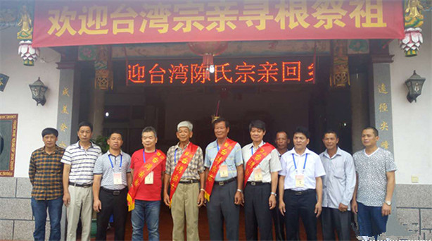 日前,从台湾宜兰县赴厦门参加海峡论坛的陈世埙一行四人,跪在漳州南靖县金山镇霞……