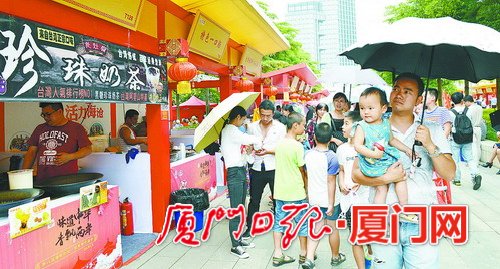 厦门网-厦门日报讯(文/记者 杨继祥 林岑 图/记者 黄晓珍)两岸特色庙会,历届都是海峡论坛的“重头戏”,也是最具人气的活动之一。昨日,两岸特色庙会在海沧市民广场鸣锣开市,首日即迎来市民和游客15万人次。本届庙会共设摊位210个,其中170个来自台湾,覆盖台湾21个县市知名美食,规模之大超越往届。
