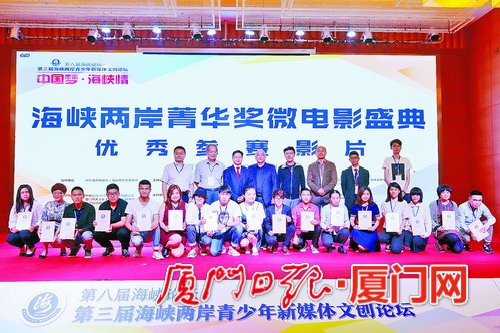 主办方还为上一届海峡两岸青少年新媒体文创论坛评选出的“海峡两岸青年创新创业大赛菁华奖”优秀项目和“海峡两岸菁华奖微电影盛典”优秀参赛影片颁奖。