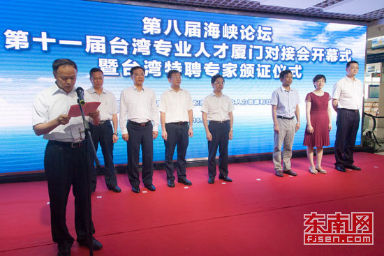 上午举行的开幕仪式上,厦门市委常委、组织部部长陈秋雄等厦门市领导为第二批台湾特聘专家代表颁证。厦门市台湾特聘专家制度是厦门市根据《厦门市中长期人才发展规划纲要(2010—2020年)》《厦门市实施“海纳百川”人才计划打造“人才特区”2013——2020行动纲要》等法规,招募一批具有较高学识、技能或较为丰富经验,有专厂并经实践证明有一定行业地位或社会影响,受聘于厦门市批准设置的特聘专家岗位的台湾地区高层次人才。
