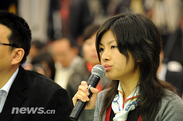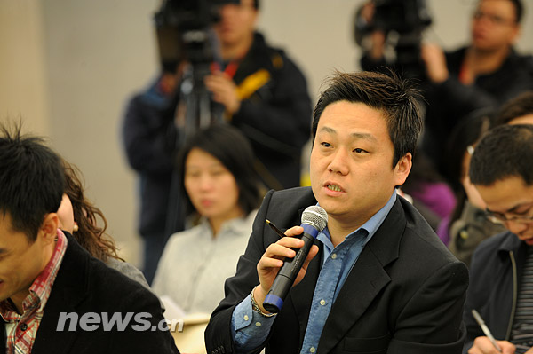 图为台湾东森电视台记者提问。新华网 文涛 摄