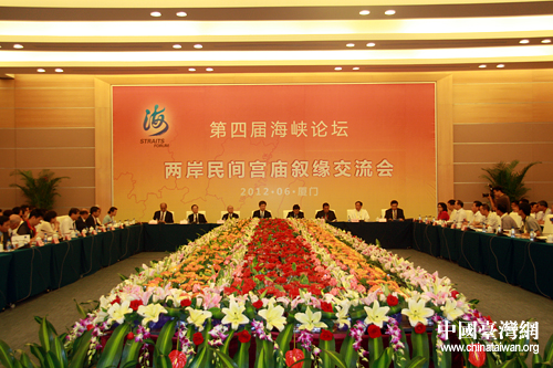 中国台湾网6月17日厦门消息 百家宫庙,神缘缔结民间;兄弟情义,血脉一贯绵长——“第四届海峡论坛·两岸民间宫庙叙缘交流会”今天下午在厦门举行。