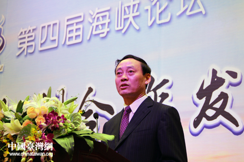 全国人大副委员长、民革中央主席周铁农为论坛启幕。(中国台湾网 杨丽 摄)