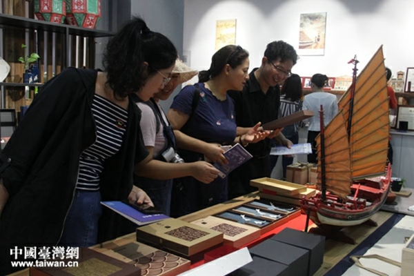 两岸学者欣赏文创产品。(中国台湾网 汪明珠 摄)
