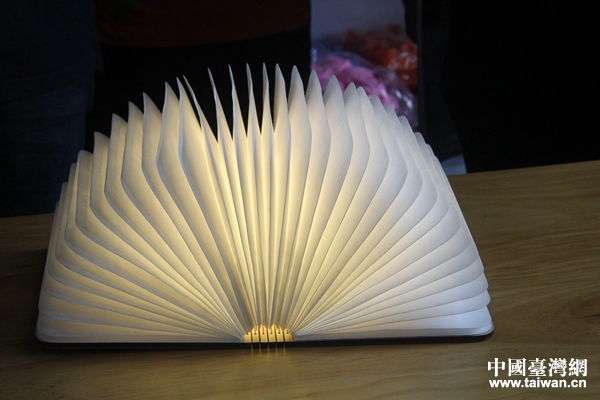 文创企业负责人展示的书本型夜灯。(中国台湾网 汪明珠 摄)