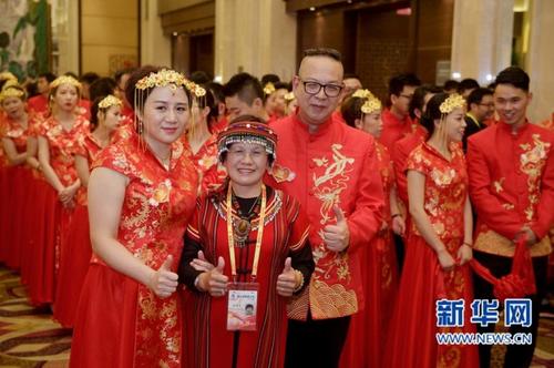 2017年6月17日,来自海峡两岸的百位新人在厦门第九届海峡论坛活动中举行集体婚礼。(图片来源:新华网)