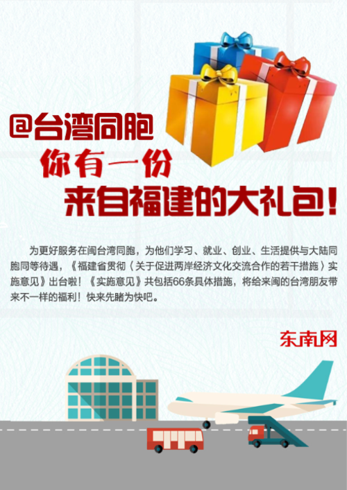这66条措施干货满满,体现了闽台间浓浓的同胞情、手足谊。这些措施聚焦台胞台企需求,突出先行先试,突出人才交流,突出民间往来,将为台胞在闽学习生活创业就业创造更为便利的条件,具有极强的针对性和指向性——提供更多同等待遇,让在闽台胞共享新时代福建改革发展成果。