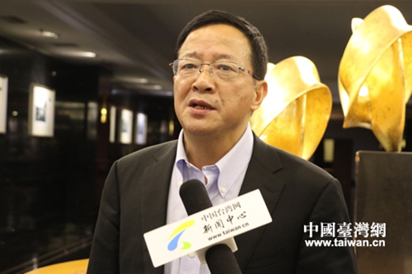 台企联秘书长程金中接受记者采访。(中国台湾网 张丽媛 摄)