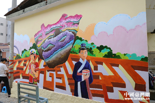 占据整面墙的作品(中国台湾网 袁楚 摄)