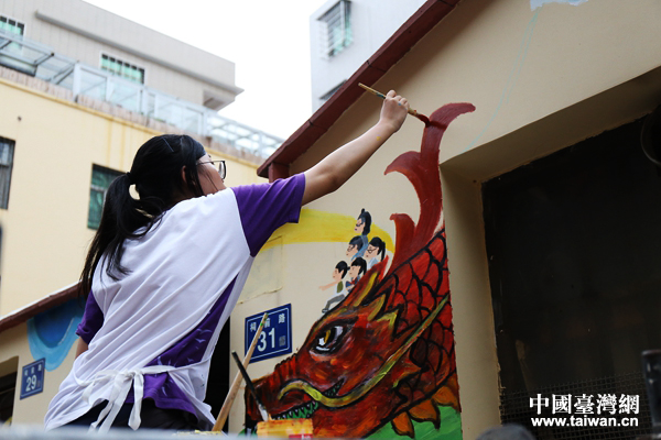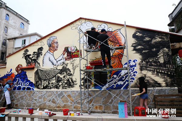 中国台湾网6月6日厦门讯 (记者 袁楚)作为第十届海峡论坛交流活动之一,“打破界限”两岸创意涂鸦大赛作品决赛阶段正在厦门市集美区如火如荼地进行。大赛以极具个性的涂鸦为活动内容,通过抽签的方式将两岸的参赛选手交叉分组,合作完成决赛作品,让两岸艺术家在创作中深入合作互动,同时促进两岸青年交流。来自两岸的青年艺术家们不惧夏日炎热,潜心创作,目前涂鸦作品已初具规模。
