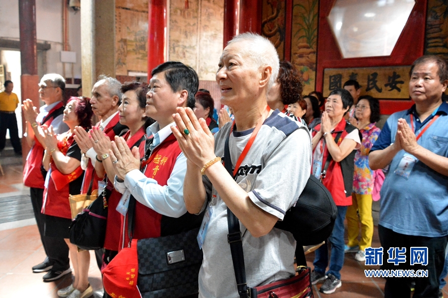 台湾青山王信众在惠安青山宫祖庙虔诚祈愿。新华网发(林楷煜摄)