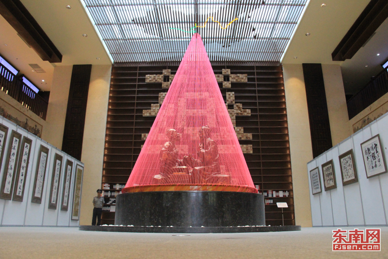 “三脉合一”的雕塑相当醒目,大型红色脉线寓意深远