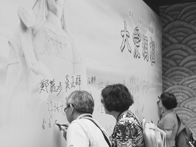海峡两岸代表在电视纪录片《大爱妈祖》开拍看板上签名见证。