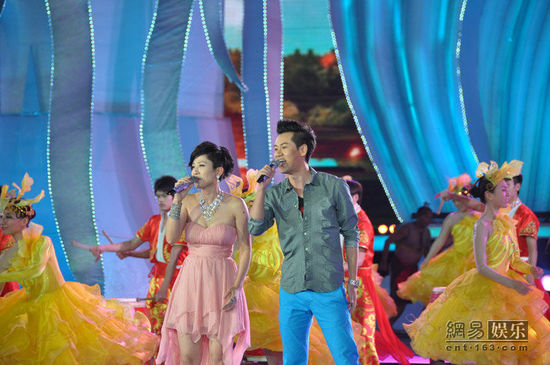 徐子崴和台湾才女彭立合唱《两岸一家亲》。
