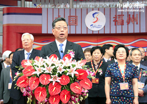 18日,福建省省长在第十一届海峡两岸经贸交易会开幕式上致辞。当天上午,第十一届海峡两岸经贸交易会(简称“海交会”)在福州开幕。 (中国台湾网 钟宝华 摄)