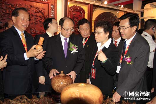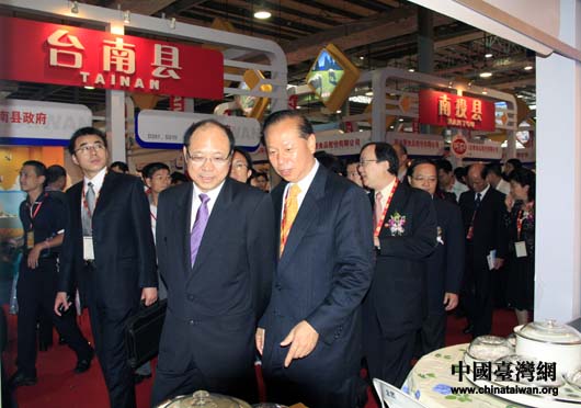 5月18日上午,国台办常务副主任郑立中在台湾亲民党秘书长秦金生的陪同下,来到参加第十一届“海交会”的“台湾县市名优特产品展区”参观。(中国台湾网 钟宝华 摄)