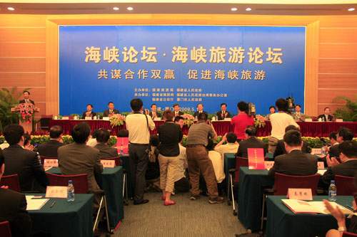 海峡旅游论坛由国家旅游局、福建省人民政府联合主办,出席嘉宾包括台湾观光协会、台湾海峡旅行公会总会、台北县、嘉义县、以及澎湖金马的观光旅游部门负责人,台湾雄狮、康富等主要旅行社以及长荣、华航、复兴、立荣和华信五家岛内航空公司代表。(记者 钟宝华 许雯)