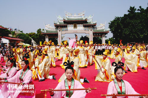 作为首届海峡论坛重要活动之一,本次祭祀的祭文中特有诗赞曰:海峡论坛,序幕揭开,首启宏例,经纶乾坤,直航湄洲,谒祖进香,族群同异,均沾福祉。