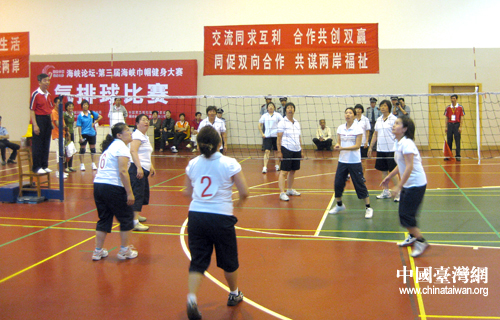 中国台湾网5月18日泉州消息 海峡论坛·第三届海峡巾帼健身大赛各个项目的比赛18日全面展开。台湾代表团派出8人组的气排球队参与第一阶段的比赛。