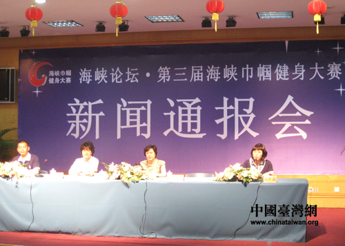 中国台湾网5月14日泉州消息 “海峡论坛·第三届海峡巾帼健身大赛”新闻通报会今天上午在福建泉州召开,本届大赛主题为“海峡巾帼展英姿 交流合作促发展”。据了解,此次台湾代表团共派出99人,参加气排球、太极拳、体育舞蹈等项目的比赛。