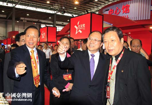 5月18日上午,国台办常务副主任郑立中在台湾亲民党秘书长秦金生的陪同下,来到参加第十一届“海交会”的“台湾县市名优特产品展区”参观。(中国台湾网 钟宝华 摄)