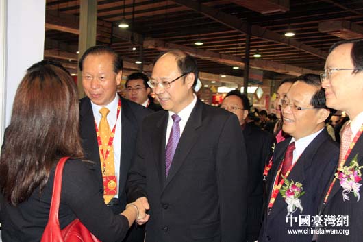 5月18日上午,国台办常务副主任郑立中来到第十一届“海交会”的“台湾县市名优特产品展区”参观,向台湾各县市展区负责人握手问候。(中国台湾网 钟宝华 摄)