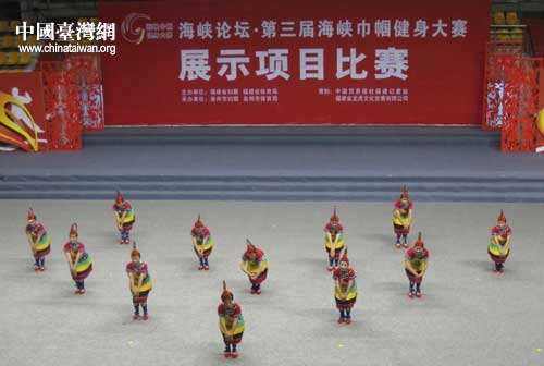 中国台湾网5月19日泉州消息 海峡论坛·第三届海峡巾帼健身比赛展示项目决赛今天晚上7点在泉州侨乡体育馆举行,共有来自台湾、香港、澳门,福建泉州、三明、厦门等7个设区市,以及福建省直机关、福建省个私协等12支队伍参加。比赛中各个代表队的精彩演出,让观众们重新认识了女性的魅力与风采。