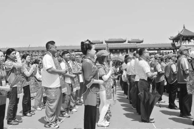前来参加这次祭典的台湾信众共有12000多人,他们虽然来自不同宫庙,但衣帽上都印有“万众齐拜”、“大家欢喜迎妈祖”等字样。