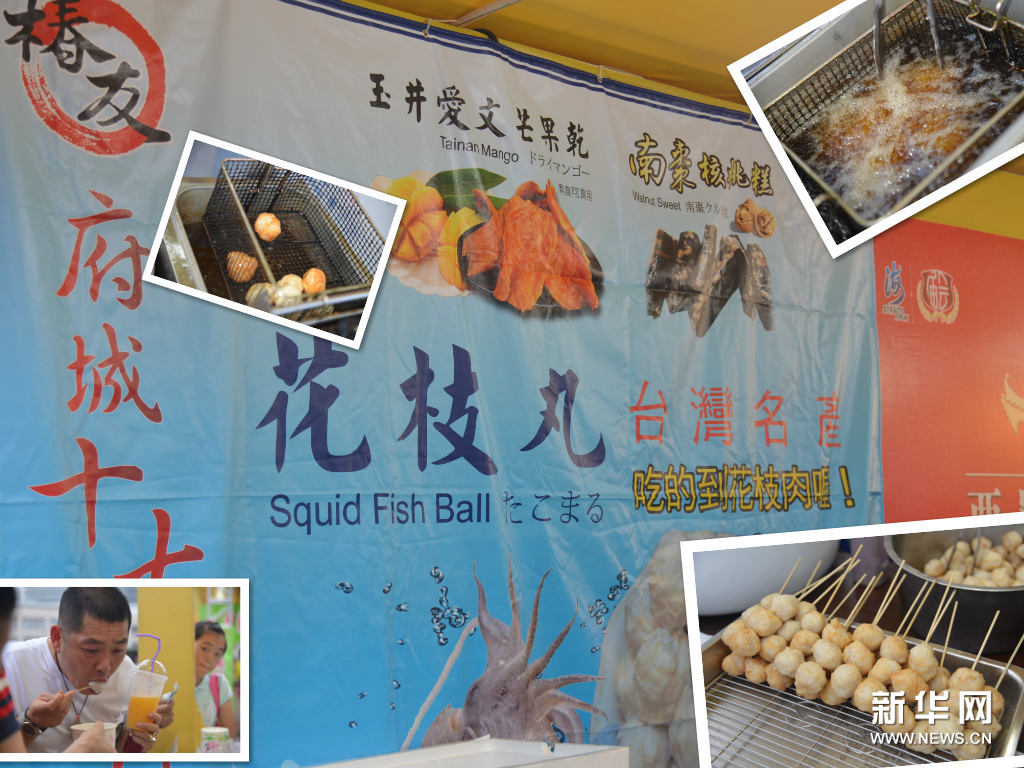 “我们来自台南,庙会我是第一次来。跟台湾夜市相比,这边人真是多,也很热情,我这里常常排长队,说明大陆也蛮肯定我们的食品”。老板娘蔡仁惠一遍忙着给手中的丸子串洒调料,一边给我们介绍。“我们的丸子不加淀粉,用道道地地的花枝打浆,里面还有花枝肉,口感特别Q弹。这边人很多,我们带的食材也有限,明天可能就没有货了。我们在大陆是有代理商的,效果很好,大陆人多,商机很多,我们的食材也很实在,大陆的朋友又可以吃到我们的美食,是一件互惠的事情啊。我们也希望寻求更多的经销商代理商,附件深圳福州都有的,给我们带来了实实在在的实惠。”